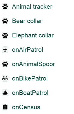 - For a complete and up-to-date overview of all available icons and track types, please visit the Taxonomy explorer in Sensing Clues Central.