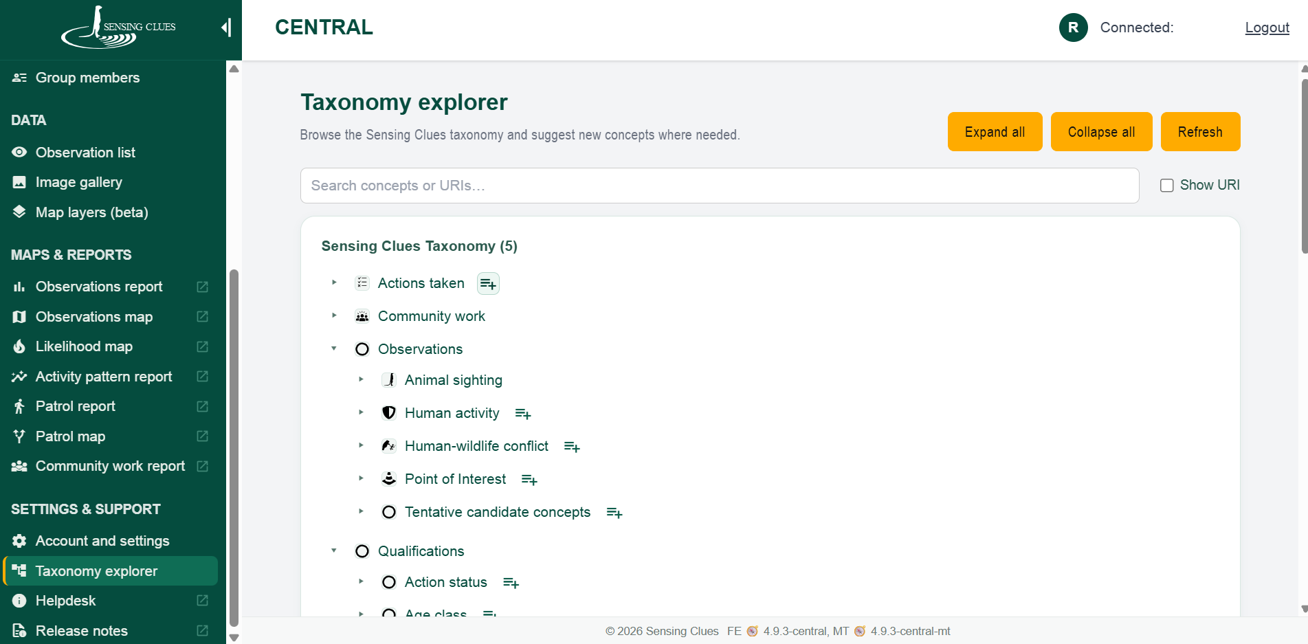 - Taxonomy Explorer (SETTINGS & SUPPORT): You can now browse the Sensing Clues taxonomy directly in Central. Premium users can also suggest new concepts where needed, helping to expand and refine the classification system.